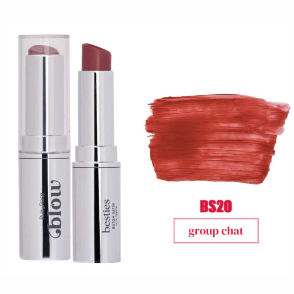 O Batom Satin Besties entrega cobertura total, com textura suave e cremosa que desliza facilmente nos lábios. Seu acabamento luminoso
