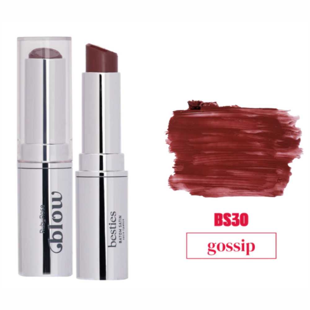 O Batom Satin Besties entrega cobertura total, com textura suave e cremosa que desliza facilmente nos lábios. Seu acabamento luminoso