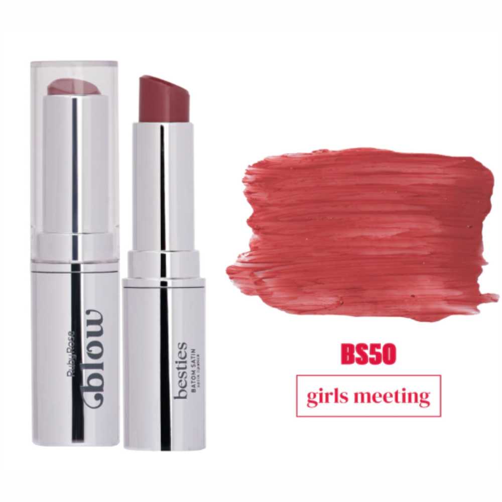 O Batom Satin Besties entrega cobertura total, com textura suave e cremosa que desliza facilmente nos lábios. Seu acabamento luminoso