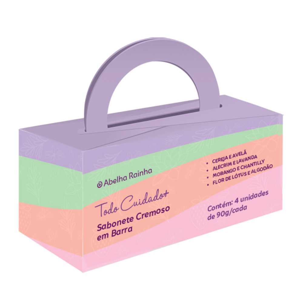A caixa Presenteável contém 4 sabonetes cremosos de base vegetal, com 90g cada, enriquecidos com manteiga de karité e oferecem todo o cuidado para sua pele. Com uma espuma cremosa e envolvente, promove limpeza e hidratação, sem agredir ou ressecar. Além de perfumar, proporcionam uma deliciosa sensação de maciez, transformando seu banho em um momento especial.