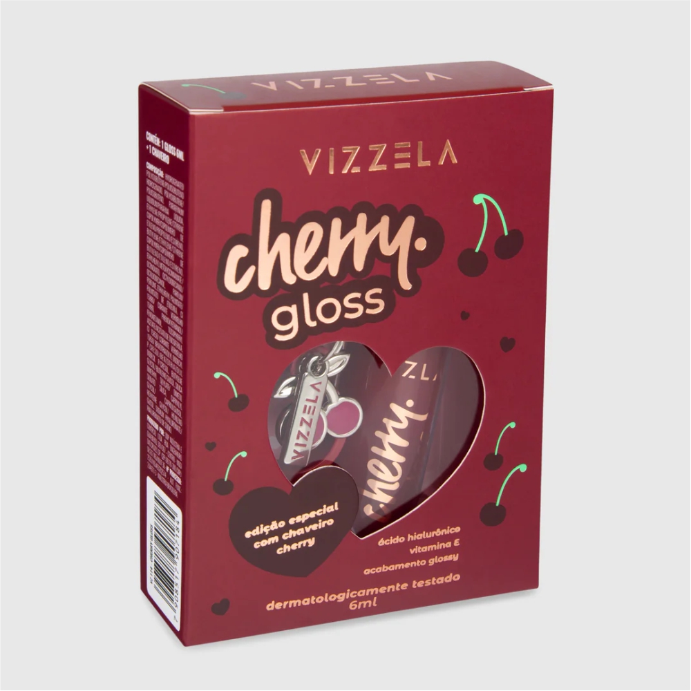 O Cherry Gloss com Chaveiro tem um tom vermelho cereja translúcido que realça a cor natural dos lábios com um leve toque avermelhado.