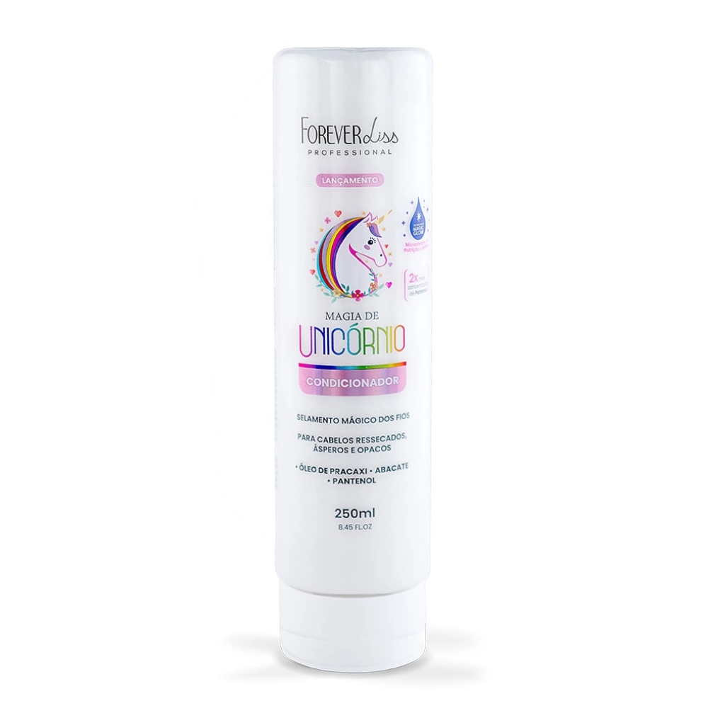 O Condicionador Magia de Unicórnio Forever Liss é a magia que faltava para os fios secos e danificados. Isso porque seu blend de óleos de coco, abacate e pracaxi somado à Tecnologia Magic Glow proporciona brilho imediato, reparação e fortalecimento dos cabelos.