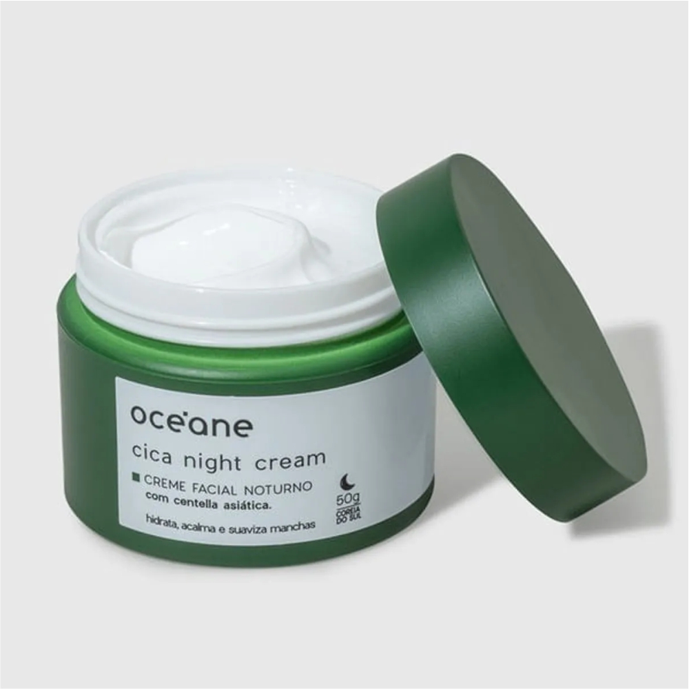 O Creme Facial Noturno Cica Night Cream possui cica (centella asiática), óleo de semente de girassol e óxido de zinco. De textura densa, ele acalma e repara a pele, agindo durante toda a noite com sua ação calmante e cicatrizante.