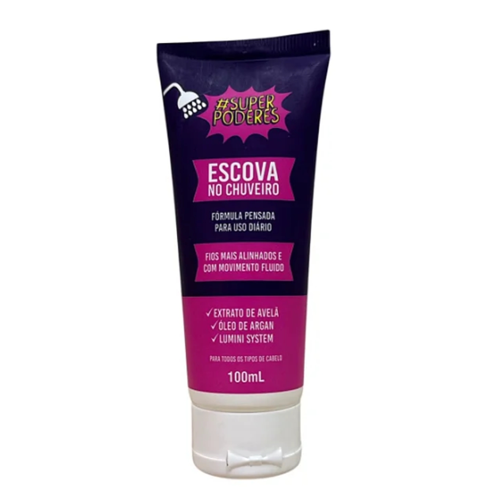 A Escova de Chuveiro Super Poderes é uma máscara capilar prática e poderosa, perfeita para quem busca fios lisos, alinhados e cheios de brilho - tudo isso sem precisar ia ao salão. Sua fórmula combina o exclusivo Lumini System, que garante um brilho tridimensional, efeito antifrizz e proteção da cor em cabelos tingidos. Promove um efeito liso e também trata os fios.