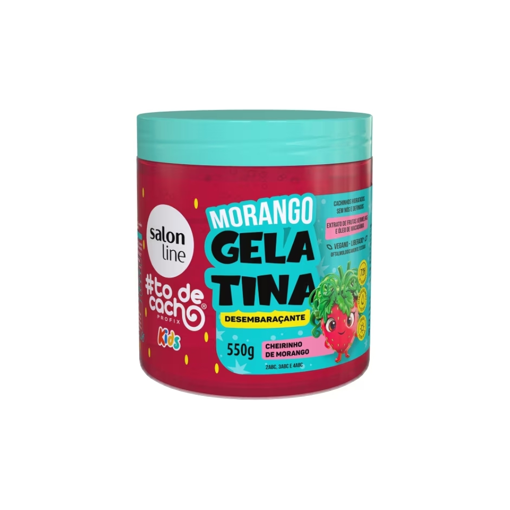 A Gelatina Desembaraçante #todecacho Kids Morango, além do cheirinho docinho de morango, proporciona desembaraço, hidratação, definição com fixação leve, brilho e controle de frizz. É dermatologicamente testada e contém filtro solar.