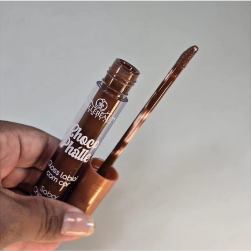 O CHOCO PHÁLLE possui uma textura suave e cremosa, com sabor de chocolate, proporcionando hidratação e brilho aos lábios.