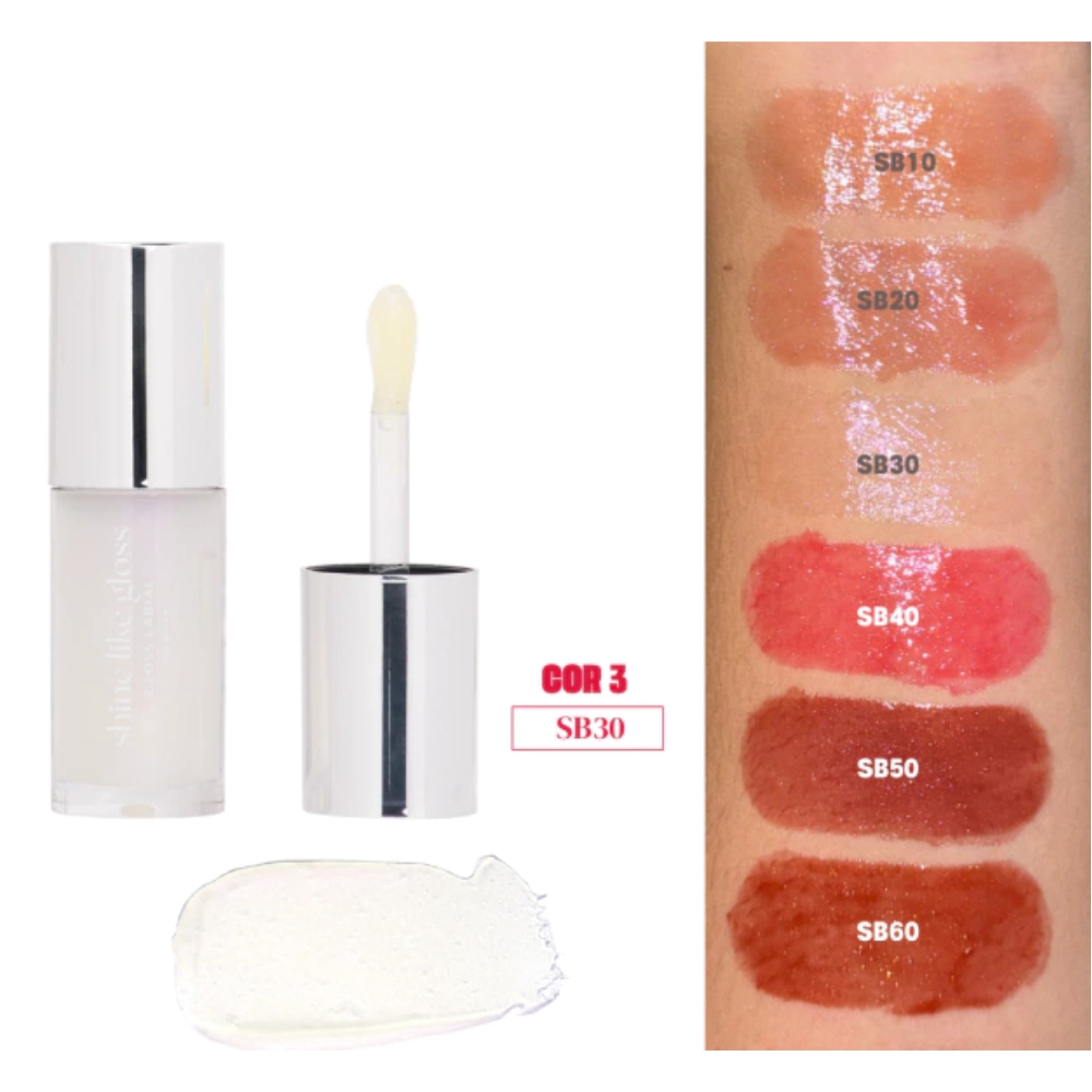 O Gloss Labial Shine Like Gloss possui textura fina e macia, proporcionando aplicação ultra deslizante e sensação confortável nos lábios. Sua fórmula suave e não pegajosa promove acabamento uniforme, deixando os lábios macios. Possui micropartículas refletoras de brilho, que garante efeito luminoso e radiante com um aspecto impecável.