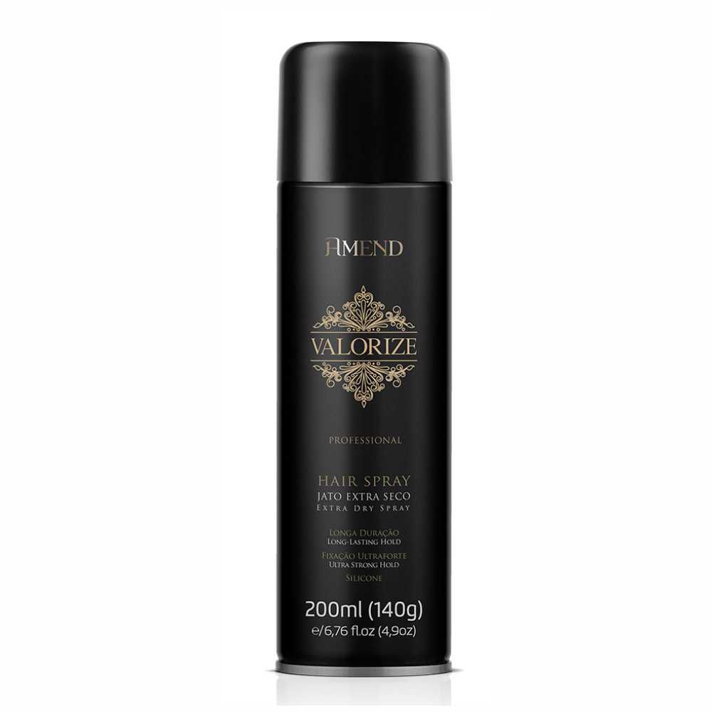 Hair Spray Amend Valorize Ultraforte possui longa duração, ideal para definir e finalizar com alta performance qualquer tipo de penteado, mechas e franjas sem pesar nos fios. Alta resistência à umidade, realça o brilho e protege o cabelo através da combinação de Silicone. Não deixa resíduos no fio.