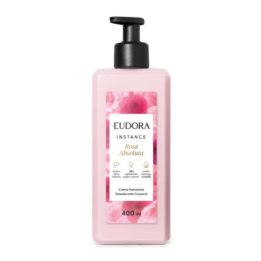 Eudora Instance Creme Hidratante Desodorante Corporal Rosa Absoluta possui textura leve e secagem rápida para deixar sua pele macia, desodorizada e perfumada.