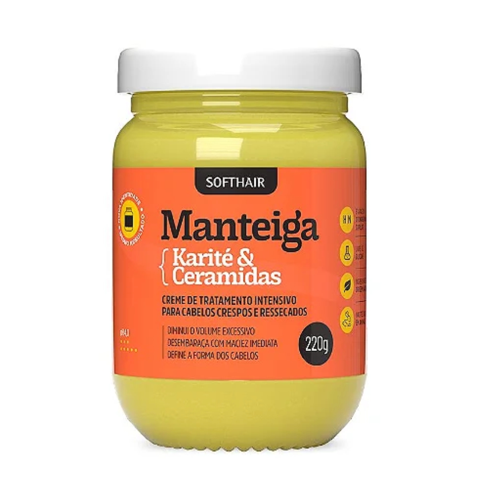 O Creme de Manteiga de Karité e Ceramidas Soft Hair é um creme de hidratação intensiva indicado para cabelos ressecados, agredidos por tinturas, alisantes, permanentes e descolorantes.