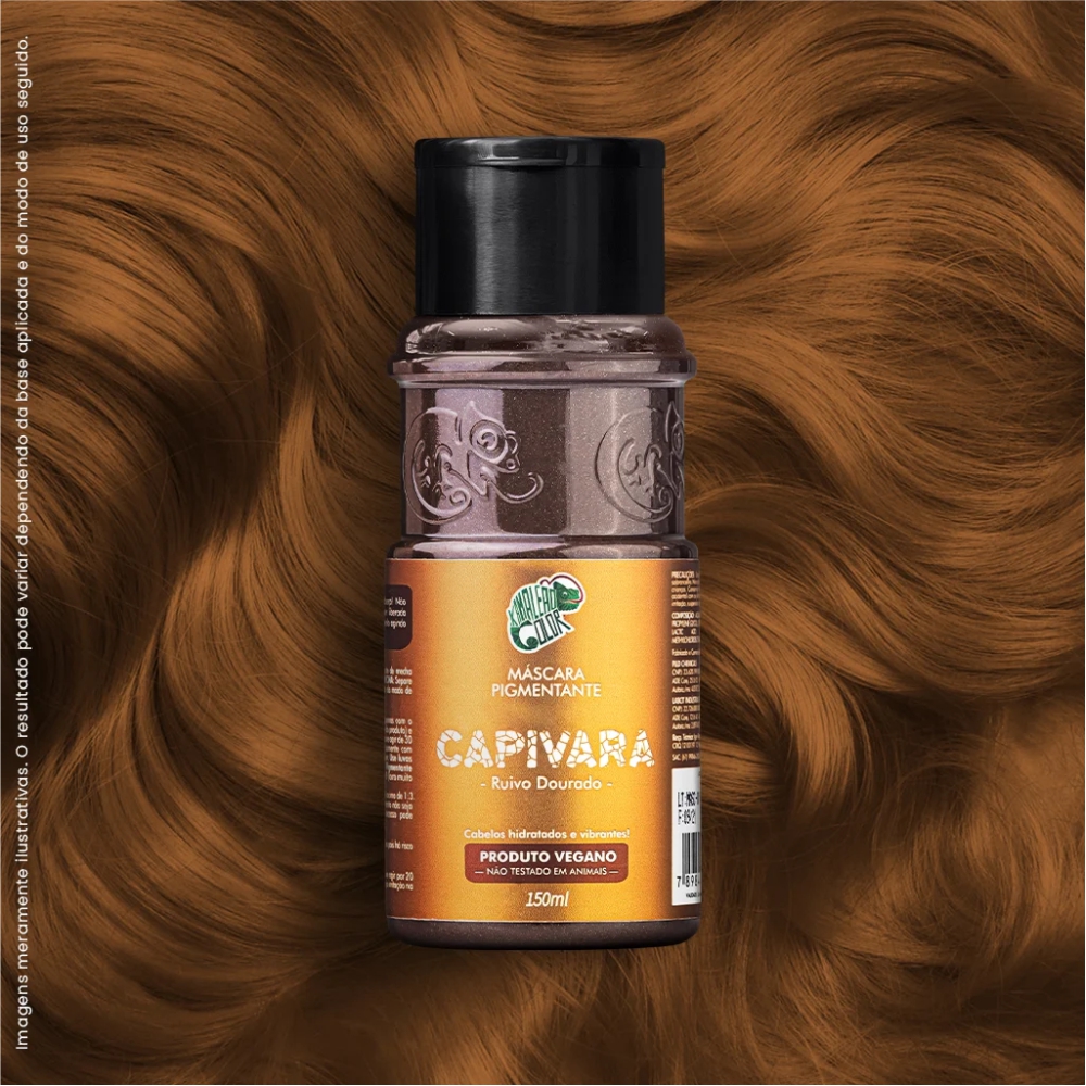 Modo de uso: Com os cabelos limpos (lavados apenas com o Shampoo Arco Íris antirresíduos para melhor absorção do produto) e secos, aplique a Máscara Pigmentante Capivara* e deixe agir de 30 a 40 minutos. Após o tempo de espera, enxágue** somente com água até remover todo o excesso. Finalize como quiser. Use luvas durante a aplicação. Para aplicação da Máscara Pigmentante Capivara seu cabelo precisa estar em uma base entre 9 (loiro muito claro) e 10 (loiro claríssimo) matizado e uniforme.
