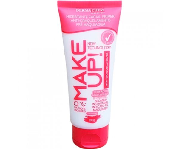 O Hidratante Facial Primer Anticraquelamento Pré-Maquiagem Make Up da Dermachem Laboratory possui hidratação elástica com D-Pantenol e ácido hialurônico, que alcança até sete camadas da pele, amenizando pequenas imperfeições e linhas de expressão.