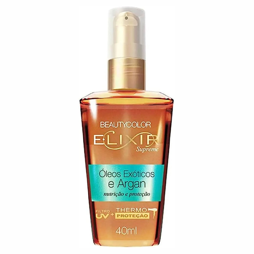 O E.LIXIR ÓLEOS EXÓTICOS E ARGAN BEAUTYCOLOR nutre os fios conferindo maior maleabilidade e maciez, indicado para cabelos ressecados e opacos. Uso diário.