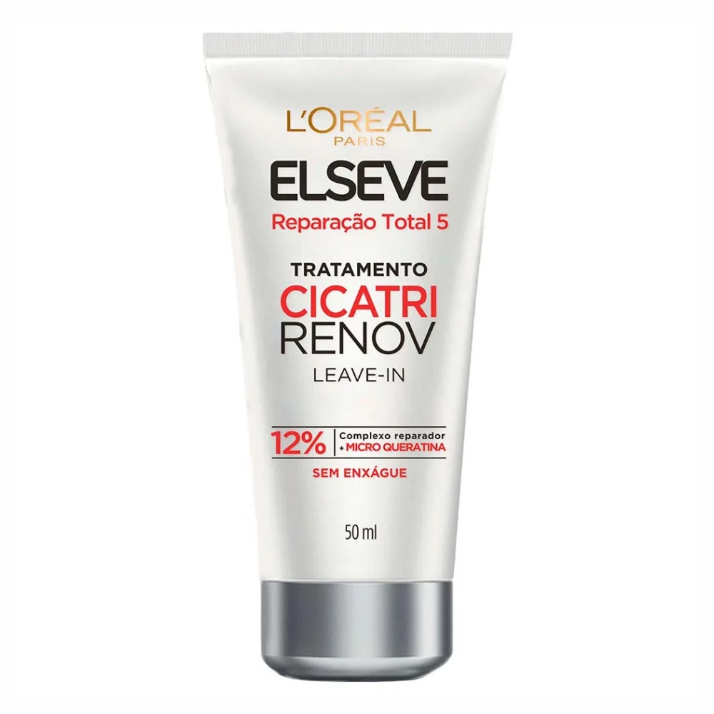 O Leave-In Cicatri Renov Elseve Reparação Total 5 identifica e repara os danos fio a fio do cabelo sem pesar. Ele trata os fios instantaneamente sem pesar. Possui 10 benefícios para uma plástica capilar: reparação instantânea; selagem das pontas; 100% mais brilho; maciez profunda; toque deslizante; desembaraço imediato; 10x menos quebra; anti-frizz; anti-umidade e proteção térmica. Para todos os tipos de cabelo, renova e protege a qualquer hora e em qualquer lugar. Pode ser usado com o cabelo seco ou molhado, antes ou depois do secador.