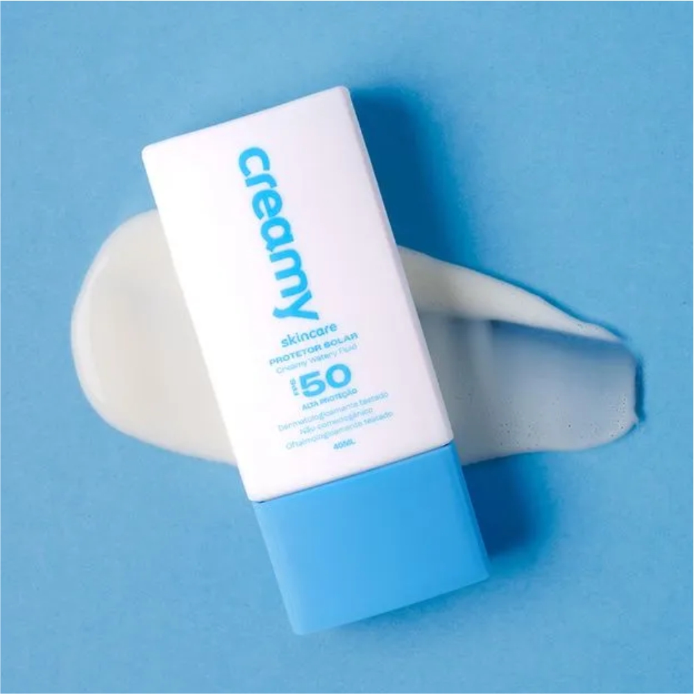 O Watery Fluid FPS 50 da Creamy é um protetor solar ultra fluido, de absorção rápida e acabamento invisível. Ele oferece alta proteção contra os raios solares, ao mesmo tempo em que ajuda a uniformizar a aparência da pele, deixando o tom mais homogêneo e com aspecto saudável.