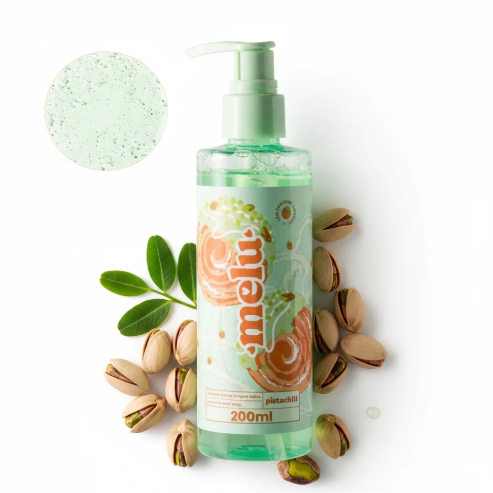 Cheirinho delicioso, espuma cremosa e pele limpinha sem ressecar! Com água de coco e extrato de cacau, esse sabonete é puro cuidado e o toque de pistache deixa tudo ainda mais gostoso. Perfeito pra deixar o corpo e as mãos com clima de sobremesa!