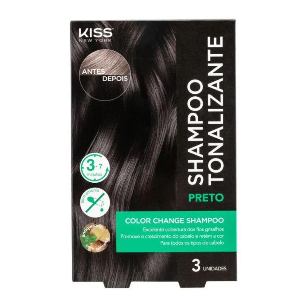 Dê tchau aos grisalhos em apenas 3 minutos usando Color Change Shampoo! Com fórmula de ação rápida, o shampoo tonalizante da Kiss NY garante 100% da cobertura dos grisalhos em um período de apenas 3 a 7 minutos.