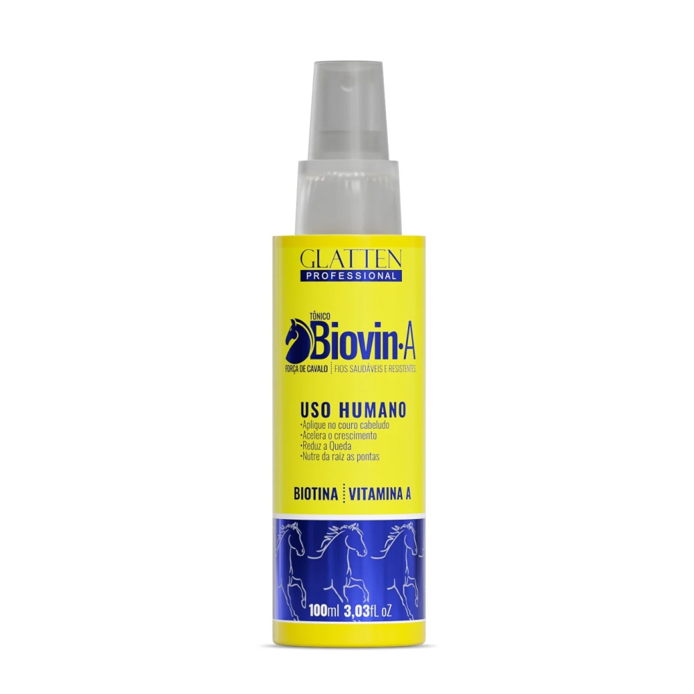 O Tônico Biovin A da Glatten foi especialmente desenvolvido para cabelos quimicamente tratados e que estão fracos, ralos, quebradiços e com dificuldade em crescer de maneira saudável. Agora você não precisa mais expor a sua saúde e recorrer a vitaminas de pet shop. Nós unimos em um único produto as 2 melhores vitaminas que existem no mercado de cosméticos para acelerar o crescimento dos fios e eliminar de vez a queda, são elas a Vitamina A + e a Biotina, com este tônico você terá os fios mais fortes, nutridos, em franco crescimento e cheios de brilho.
